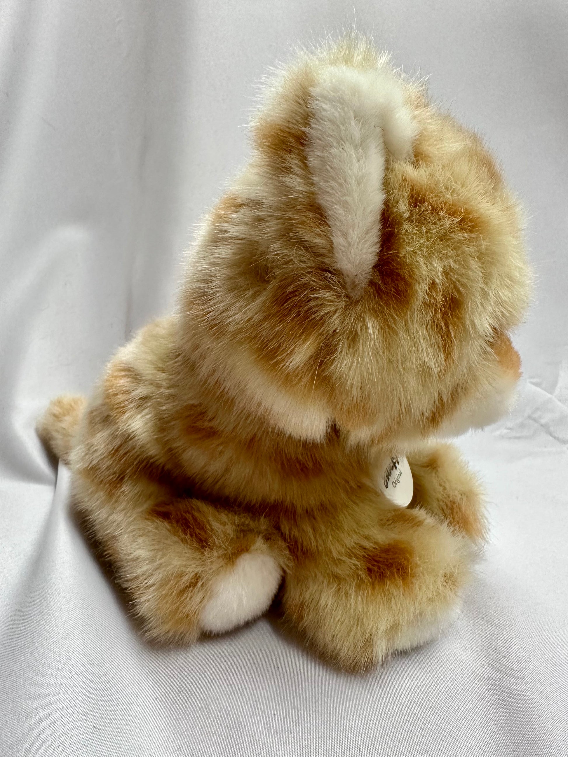 Carmen es una gatita naranja con una cabeza grande y articulada. Esta amiga de 8" está hecha de suave felpa y está buscando un hogar propio.