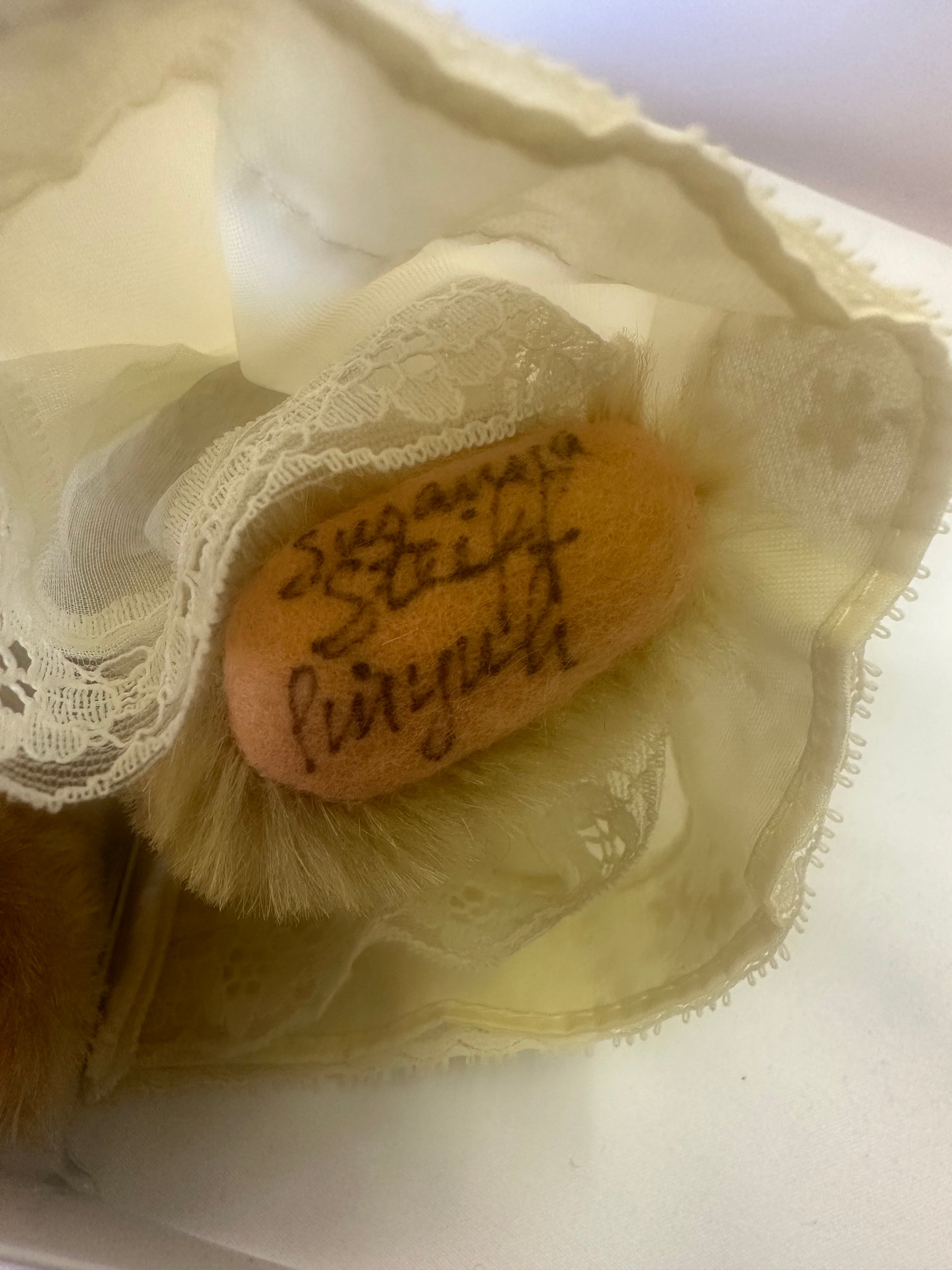 This unique teddy bear carrying a basket is from 1983 and her foot is signed by Susanna Steiff. She does not come with a box or certificate of authenticity but is certainly still a rare find. She stands about 8.5" tall and we will include a small stand to help with her display.